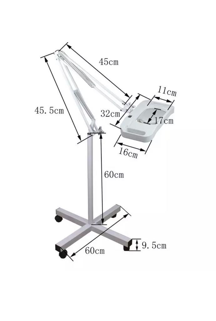 Mercek büyüteç 5x (5 kat daha büyük ve ayrıntılı görüntü) -metal paslanmaz gövde ve ayaklar – Eloktro statik fırın boya beyaz -360 derce ayarlanabilir hareketli gövde Yükseklik ve açı ayarı -220 w fiş ve 220 pirize uygun -ce beleli Profesyonel ve genel kullanıma uygun Güzellik salonları kuaför salonları kalıcı makyaj salonları için mükemmel bir loop